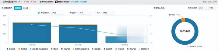 财务数据已显露压力。2025年半年报显示,上市公司实现销售收入19.76亿元,同比下降约35%;净利润为2.84亿港元,同比大幅下滑58.7%;整体毛利率由去年同期的55.2%降至41.5%。从业务结构看,静脉输液及其他产品的收益占比高达95.3%,实现收入20.46亿港元,同比下降36.9%。其中,作为核心高毛利产品的非PVC软袋及直立式软袋输液,收益同比锐减49.3%;安瓿注射液也因市场需求不足及价格压力,收益同比下降57%。