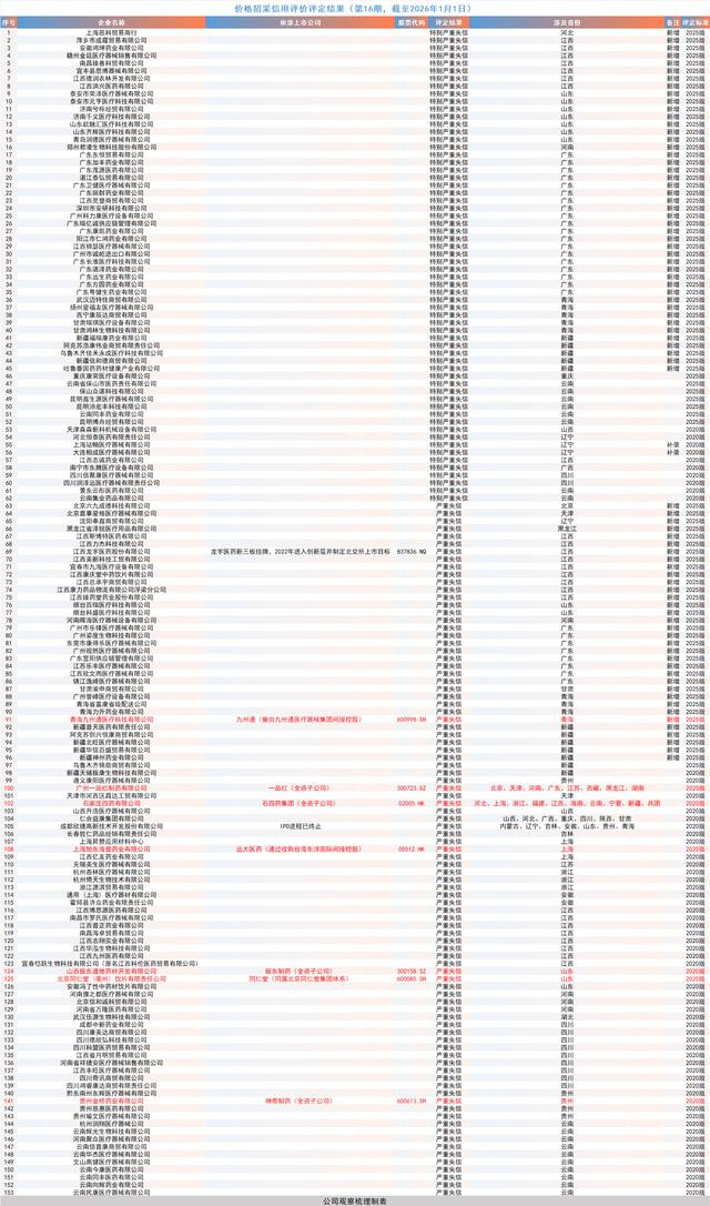 国家医保局发布第16期医药价格和招采信用评价结果,这份截至2026年1月1日的全国医药企业失信评级名单,共涉及153家企业,其中62家被划定为“特别严重失信”等级(含45家新增企业),91家为“严重失信”等级(含36家新增企业)。